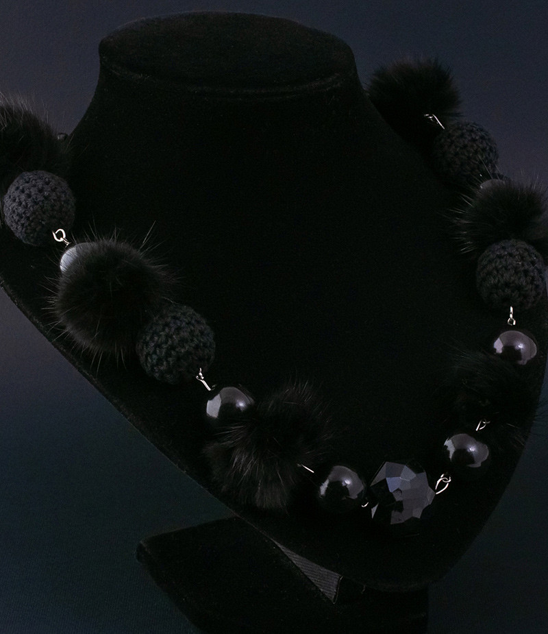 Намисто з хутра та в'язаних намистин авторської роботи.