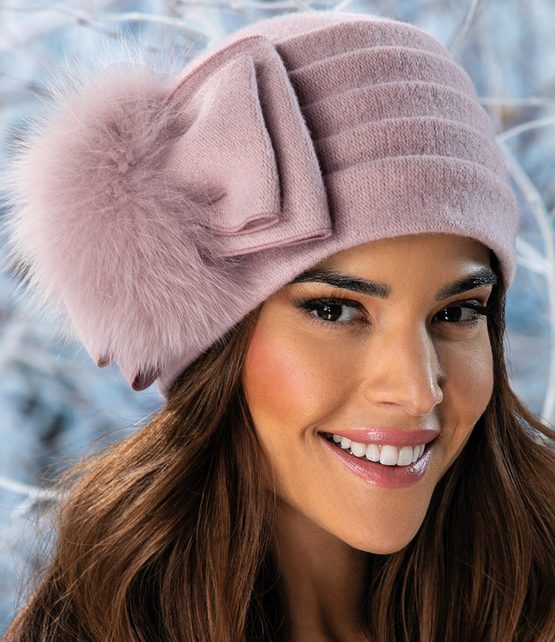 Єлегантна жіноча шапка з хутром Willi «Barbara» у кольорі пудра.