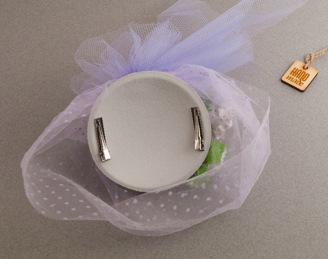 Весільні аксесуари: Вуалетка "Щаслива" легка, як мрія, і повітряна, як хмара. Якщо у Вас тематичне весілля в стилі — бузкова, вінтаж, гламур, ретро, романтик..., тоді пропонуємо звернути увагу на такий аксесуар, як вуалетка. Наречена в вуалетці має таємничий, витончений та романтичний вигляд. Вуалетка прикрашена найніжнішою гілочкою квітучої троянди сліпленою вручну з полімерної глини, дуже легка, кріпиться за допомогою затискача та розташовується комфортно, вуаль припускається на будь-яку довжину. У ніжних бузкових хмарах вуалі та квітучих троянд має ніжніший та дуже елегантніший вигляд!